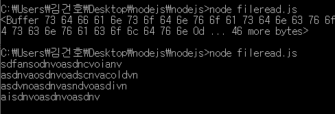 var fs=require('fs'); // 모듈사용 fs.readFile('sample.txt','utf8',function(err,data) { console.log(data); });